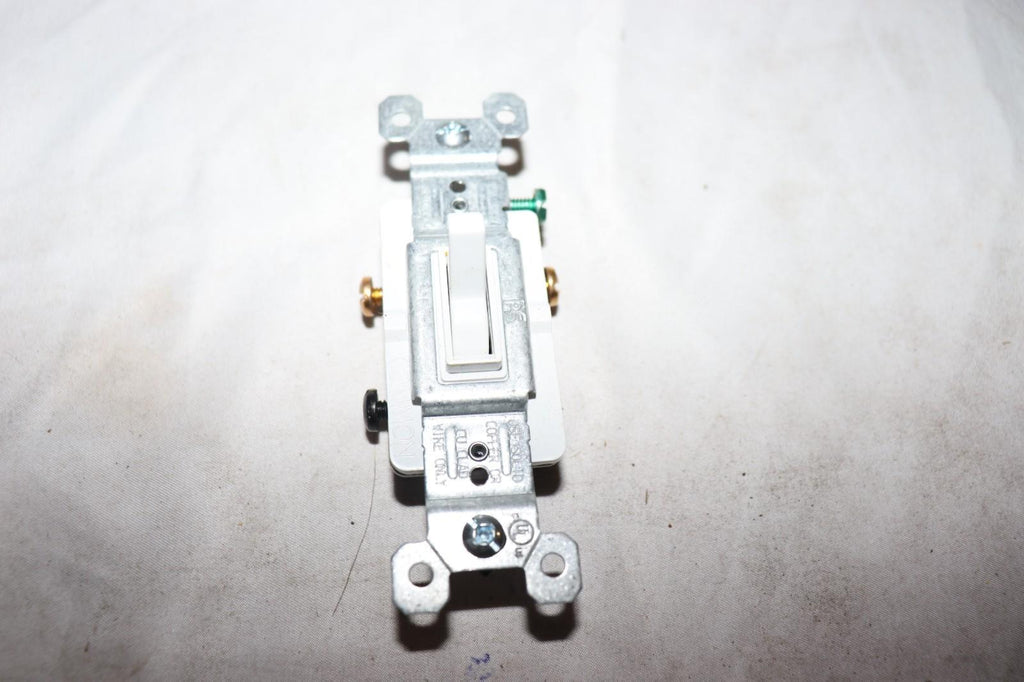 The product is a 10 pack of Pass & Seymour 663-WG 15 Amp 120 VAC 3-Way White Toggle Switches. These switches have an on/off operation method and are suitable for wall mounting in interior spaces. The switches are designed for AC current type and are compatible with wire gauges ranging from 1-5 AWG. Made of thermoplastic material, they are reliable and durable for electrical equipment and supplies in a business or industrial setting. The white color adds a clean and stylish look to any room.
