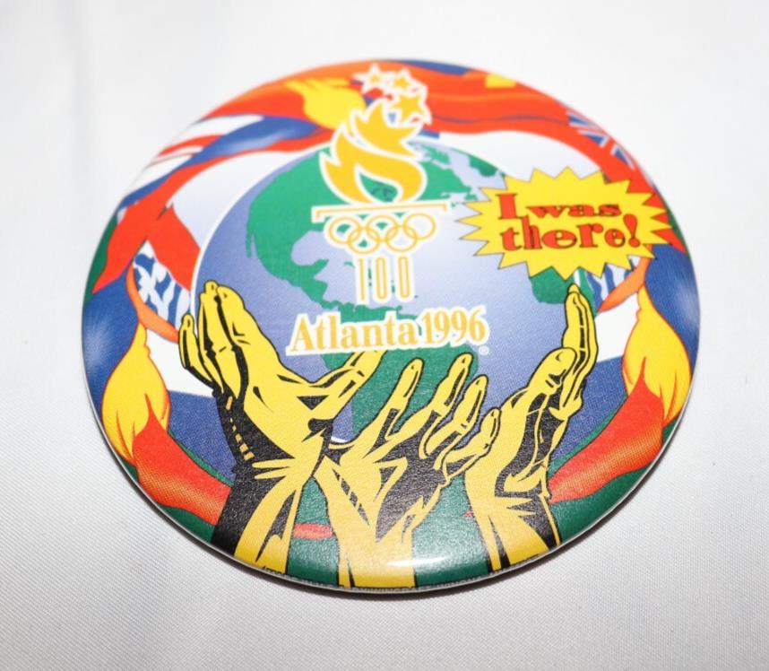 The 1996 Atlanta Olympics Pin featuring the hands holding the torch is a vintage collectible from the event. Produced by WinCraft, the multi-color pin captures the essence of the Atlanta 1996 Olympics, making it a sought-after souvenir for fans and enthusiasts. This unique pin serves as a tangible reminder of the historic sports event and is a valuable addition to any sports memorabilia collection.