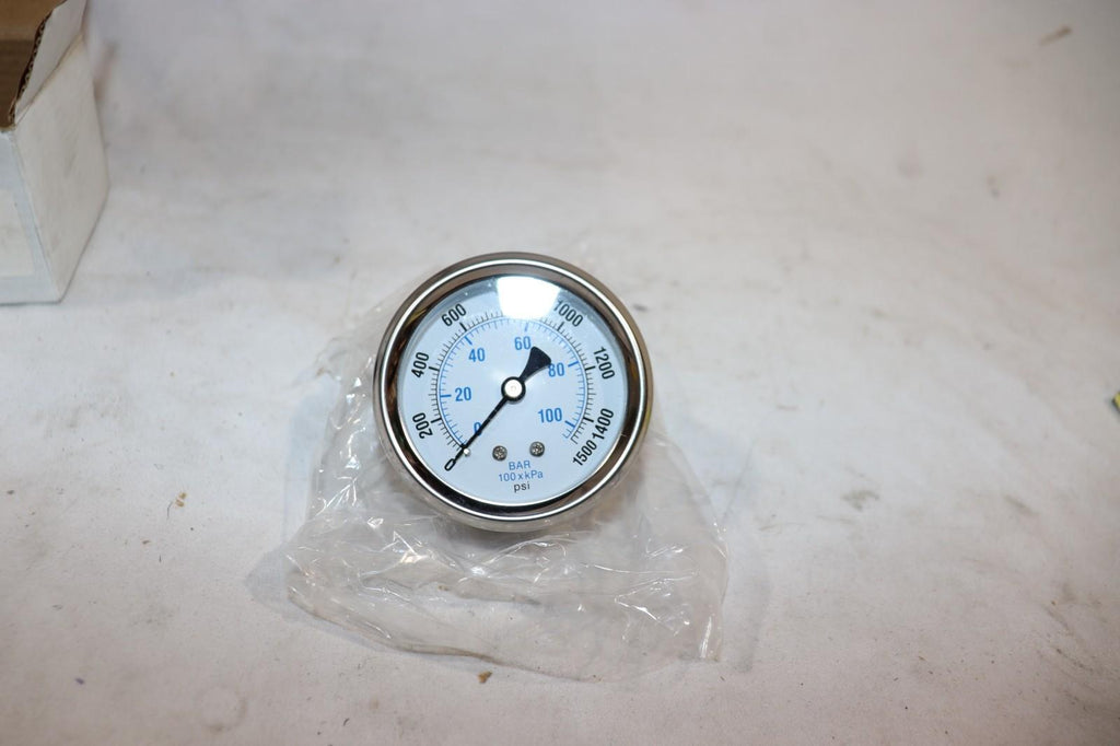 The 2.5" liquid filled pressure gauge with a maximum pressure of 1500 psi is designed for industrial use in hydraulics, pneumatics, pumps, and plumbing. The stainless steel case and back mount make it durable and easy to install. With a face diameter of 2.5 inches and a 1/4 inch connection diameter, this gauge offers accurate readings for various applications. The brass and chrome-plated connection materials ensure reliability and longevity in demanding environments.