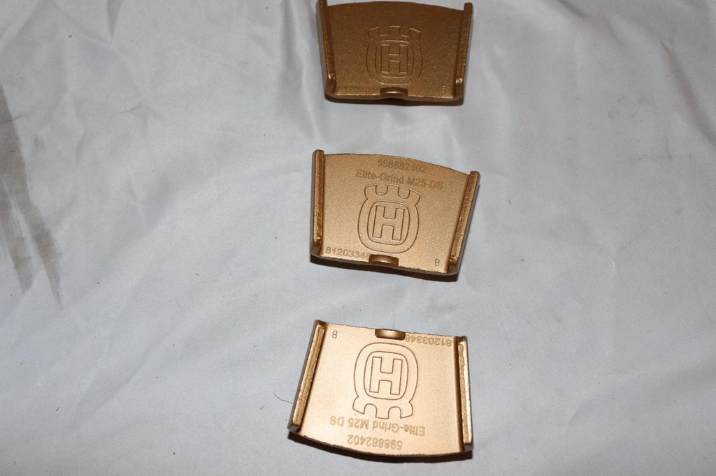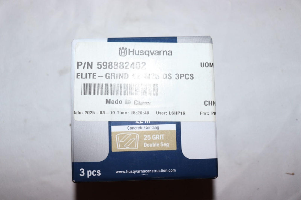 The product is a 3-pack of Husqvarna Elite-Grind EZ M2 DS 25 grinder blades, featuring a double segment design and made of genuine diamond material. Specifically designed for concrete applications, these grinder blades provide high performance and durability for professional users in the construction and industrial sectors. With the trusted Husqvarna brand name, these blades ensure efficient and precise cutting through tough surfaces, making them a reliable choice for various grinding tasks.