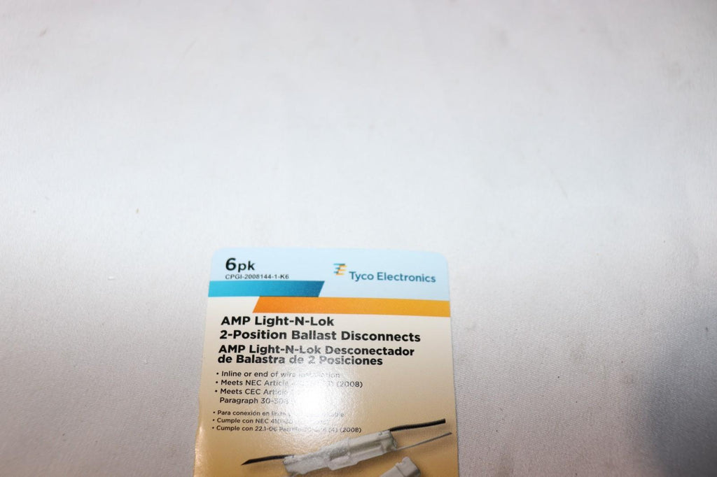 The Tyco AMP Light-N-Lok 2 Position ballast disconnects with 6" leads (CPGI-2008144-1-KG) are high-quality wire connectors designed for electrical equipment and supplies. These press-fit connectors have two poles and are compatible with through-hole mounting. With the Tyco Electronics brand reputation, these ballast disconnects provide reliable and secure connections for your wiring needs.