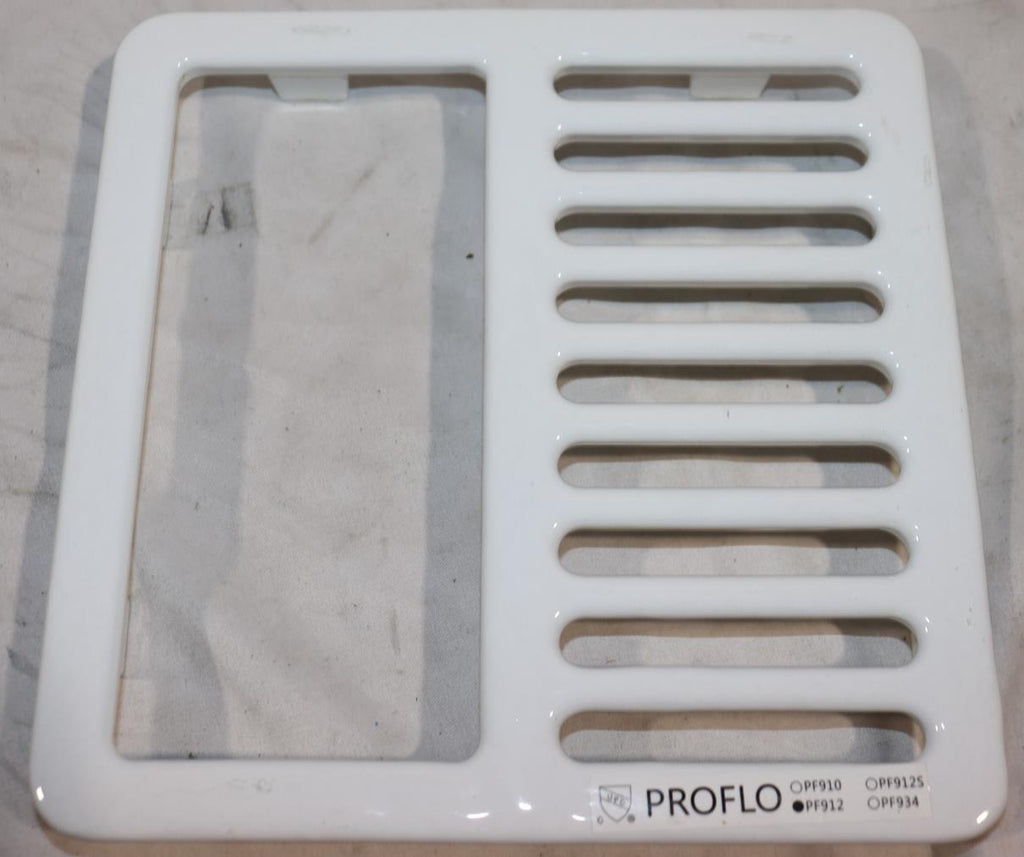 The 9.25” x 9.25” Proflo Grate is designed specifically for porcelain floor sinks, with a square shape measuring 12” on each side. Made by the brand PROFLO, this grate is constructed from durable porcelain material, ensuring a secure and stable fit for your sink. This product is an essential component for maintaining proper drainage and preventing debris buildup in your sink, providing a reliable solution for improving the functionality of your bathroom or kitchen plumbing system.