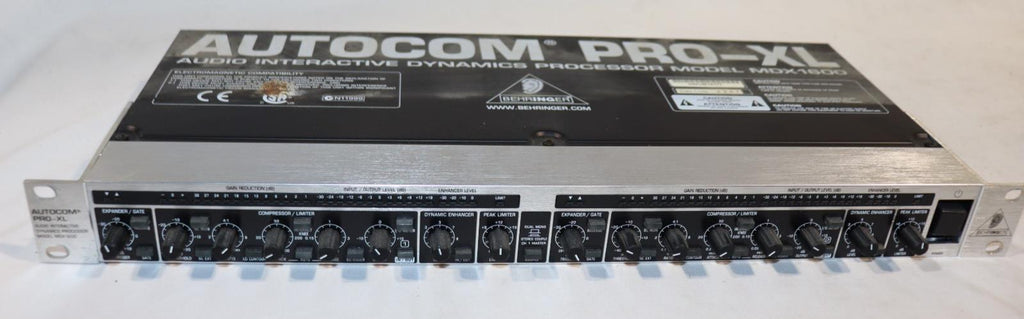 The Behringer Autocom Pro-XL MDX1600 2-Channel Dynamics Processor is a professional signal processor designed for audio dynamic control. This rack-mountable unit offers dual compressor/gate functionality with two channels for XLR inputs and outputs. It includes sidechain insert capability for compression/limiting and noise gating/expansion effects, making it versatile for various audio applications. With a sleek silver color and a compact 1U rack unit height, the Behringer Autocom Pro-XL MDX1600 is a high-quality, analog-based solution from Behringer, a trusted brand in pro audio equipment. Made in Germany, this unit is ideal for musicians and audio engineers in need of precise dynamic processing.