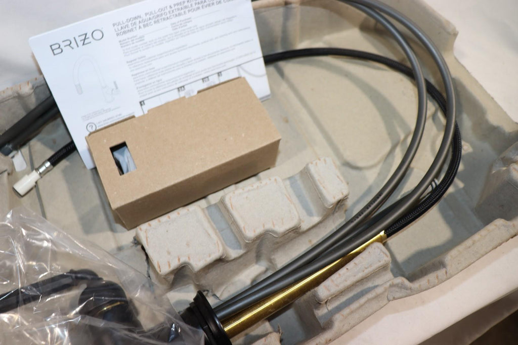 The Brizo 63074LF-BL Rook Matte Black 1.8 GPM 1-Hole Pull Down Kitchen Faucet is a modern and sleek addition to any kitchen. With a high arc design and a matte black finish, this deck-mounted faucet features a pull-out spout for added versatility. Made of gold, brass, and brass materials, it is low lead compliant and suitable for kitchen sinks. The single-hole mounting type and lever handle make installation and use easy and efficient. Perfect for adding a touch of style and functionality to your kitchen space, the Brizo 63074LF-BL kitchen faucet is a top choice for modern home design.