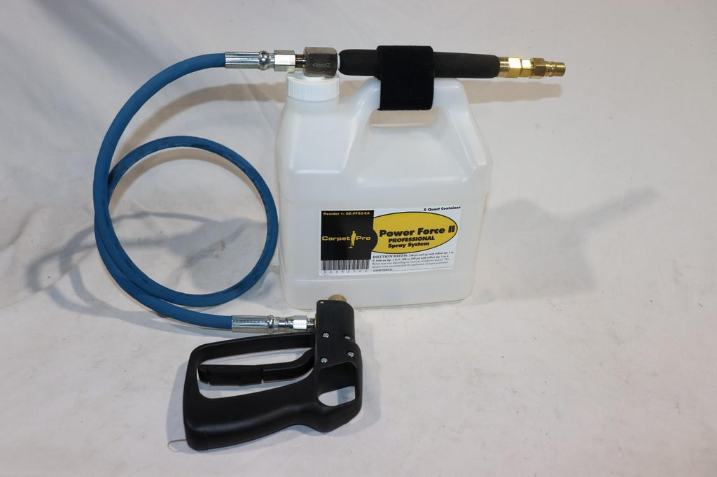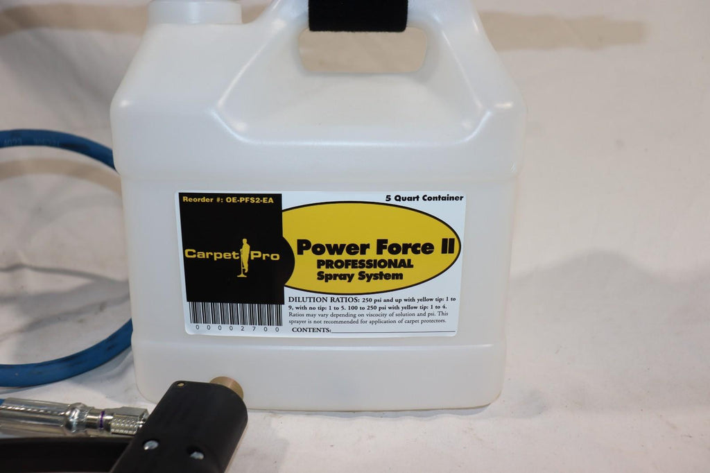 The Carpet Pro Powerforce 2 Carpet Cleaning High Pressure In-Line Sprayer Pre-spray is a specialized accessory designed for use in carpet cleaning. This inline injection sprayer, specifically designed by Carpet Pro for their Powerforce II model, provides high-pressure pre-spray for more effective cleaning. It is a reliable and efficient tool for professional carpet cleaning services, ensuring a thorough and efficient cleaning experience. With its durable construction and compatibility with the Powerforce II model, this sprayer is a valuable addition to any carpet cleaning business.