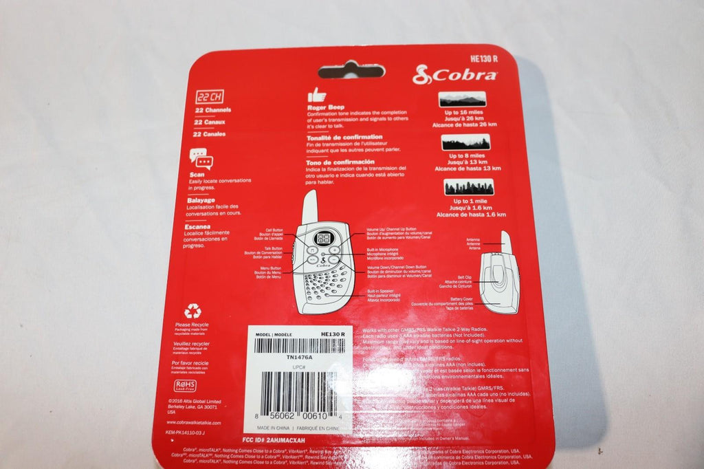 The Cobra Hero Series HE130R 16 Mile 22 Channel Walkie Talkie in Red Camo is a handheld two-way radio perfect for outdoor activities and emergencies. With a wireless range of 16 miles and 22 channels, this UHF band radio offers reliable communication without the need for a constant power source as it is battery operated. The compact design and color make it suitable for both practical use and as a stylish accessory. Ideal for hiking, camping, or any adventure, this Cobra walkie talkie is a must-have for stay connected on the go.