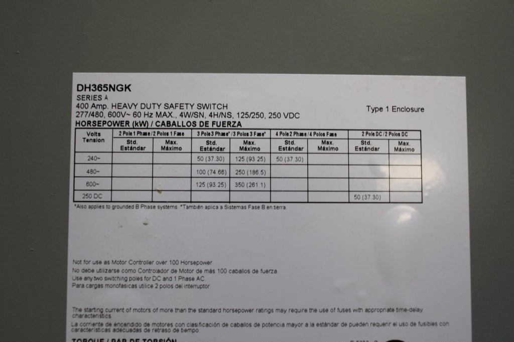 Safety Switch, 400A, 3P, 600VAC/250VDC, Type DH, Fusible, NEMA 1
