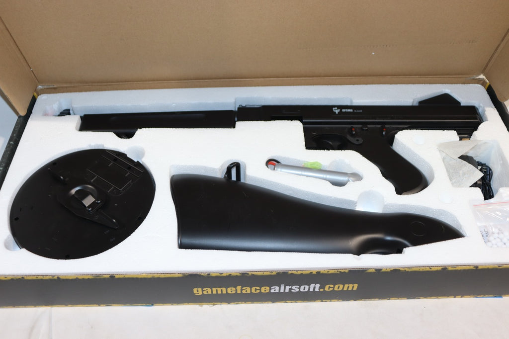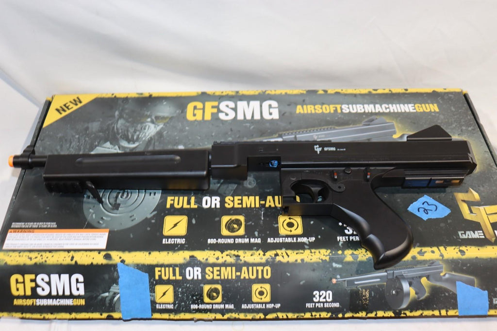The GFSMG Airsoft SMG is a 6mm BB electric full auto drum mag gun suitable for outdoor sports and hunting. This model features a durable design and reliable performance, making it a versatile choice for airsoft enthusiasts. With the included charger and box, this GFSMG SMG provides a complete package for those looking for a high-quality airsoft gun.