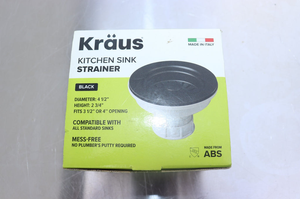 The Kraus Kitchen Sink Strainer in black is a high-quality and durable plumbing fixture designed for the kitchen sink. With the trusted brand of Kraus, you can expect a reliable and sleekly designed strainer that will efficiently catch food debris and prevent clogging of the sink drain. The black color adds a stylish touch to your kitchen decor while providing practical functionality to keep your sink clean and unclogged.