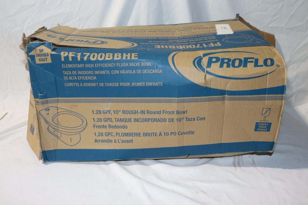 The LOT OF 2 PROFLO PF1700BBHE Elongated Toilet Bowl Only with Top Spud in White is a high-quality bathroom fixture designed for a floor-mounted installation. This toilet bowl, with an interior width of 13.130 inches and a height of 10.000 inches, is a great addition to any bathroom. The PROFLO brand ensures durability and efficiency, while the elongated bowl shape provides a comfortable seating experience. The California Prop 65 Warning indicates the product's compliance with state regulations regarding environmental safety. Made in the United States, this toilet bowl is a reliable choice for any home or commercial space.