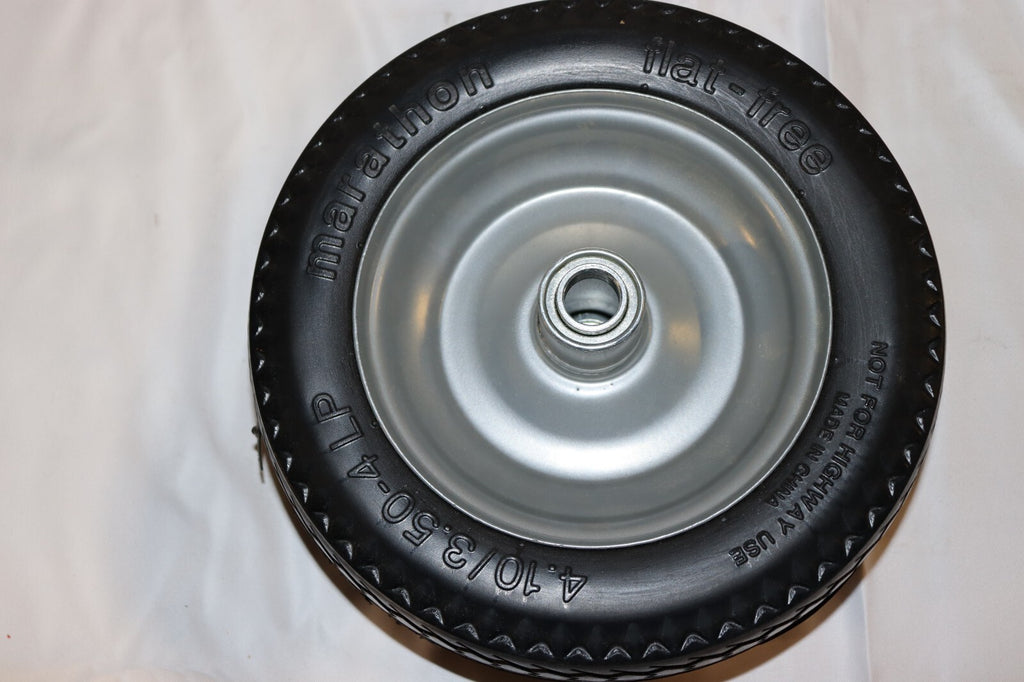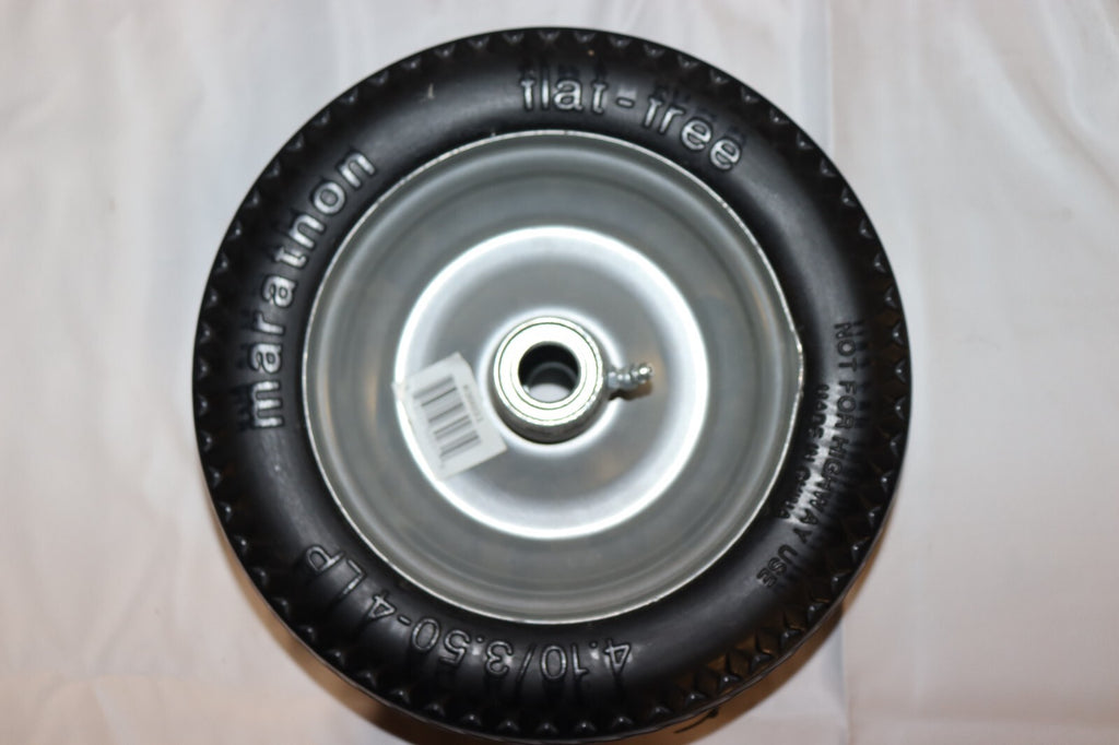 Experience the smooth ride and reliable performance of the Marathon Flat Free Tire 30031, featuring a 4.10/3.50-4 sawtooth tread design. Ideal for both residential and commercial use, these tires are crafted from durable polyurethane material, ensuring a maintenance-free experience with no flats to worry about. The sleek black color and 3-inch centered set of 2 wheels offer a classic look and easy installation, making them a smart choice for your equipment. With a width of 10 inches and a height of 3 inches, these tires are designed to fit a variety of applications. Made in CN, the tires boast a sturdy construction and long-lasting performance. Whether you're looking to upgrade your current setup or replace worn-out tires, these Marathon Flat Free Tires deliver a perfect blend of durability and efficiency.
