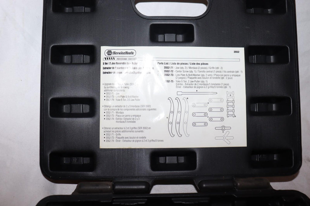 The Napa 3552 5 Ton / 2 Jaw Reversible Gear Puller is a heavy-duty tool designed for removing gears and pulleys with ease. With a capacity of 5 tons and 2 reversible jaws, this gear puller is versatile and efficient for a variety of automotive maintenance and repair tasks. Manufactured by Napa, a trusted brand in automotive tools, this set includes the necessary components for effective extraction. While it does not come with a warranty, this durable and reliable tool is essential for any mechanic or DIY enthusiast looking to tackle difficult extraction jobs.