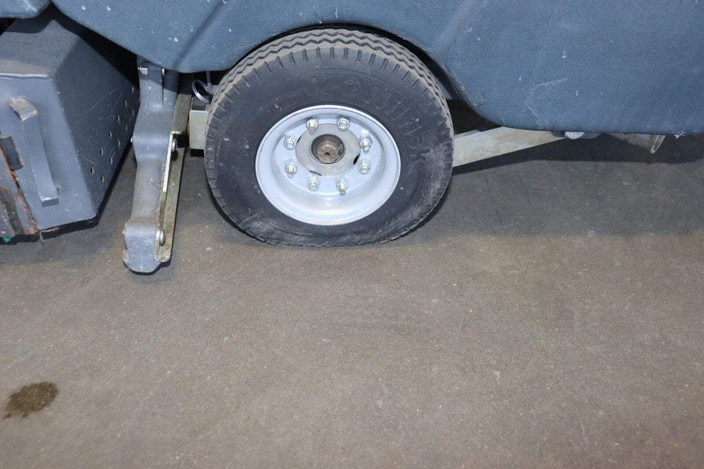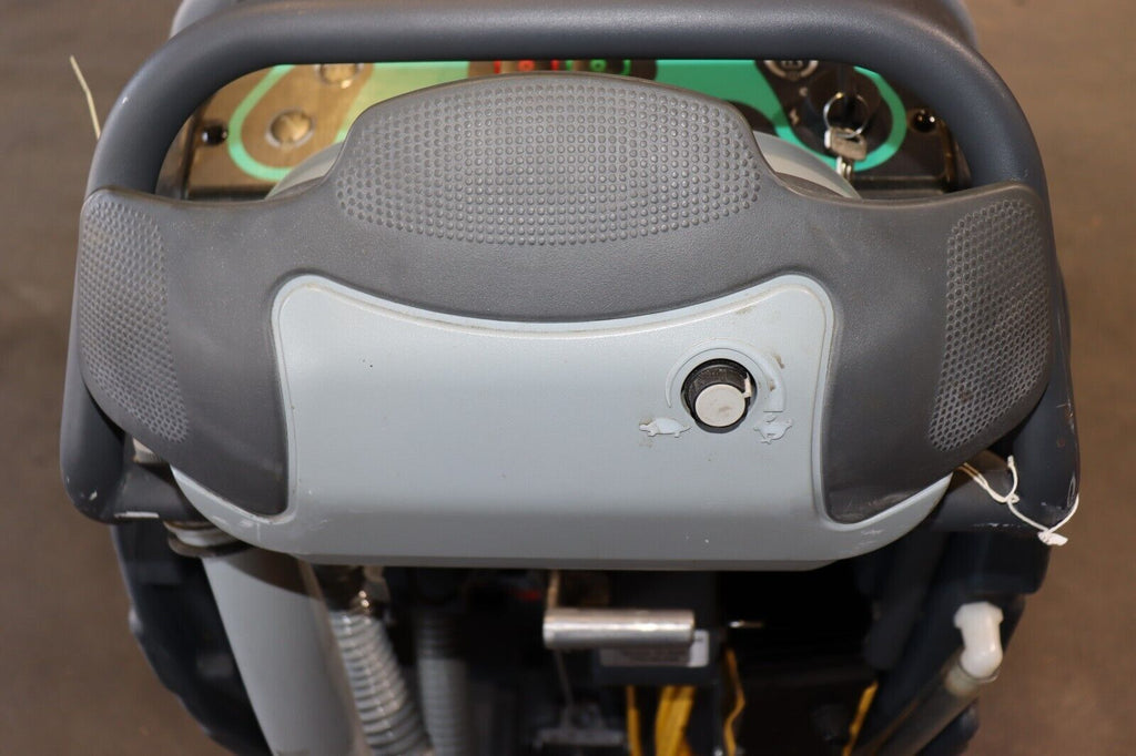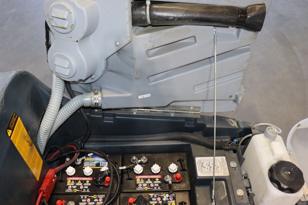 Used, in great working condition. Tested. Hour meter shows 217 hours. Please see photos. Brand new batteries as of late February 2024. Appears to missing rear squeegee. Has one tire low on air in photos, tire is full now and holding air.