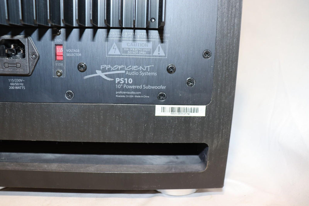 The Proficient Audio S10 Subwoofer is a 10" long throw woofer crossover box designed for home audio systems. This black subwoofer is compatible with various brands and offers a system configuration of 1 + subwoofer. It features audio inputs for stereo L/R RCA, an RMS power of 120W, and adjustable features for customized sound quality. With a cubic shape and wired connectivity, this subwoofer from Proficient is suitable for various surround sound formats, providing powerful bass for a rich audio experience.