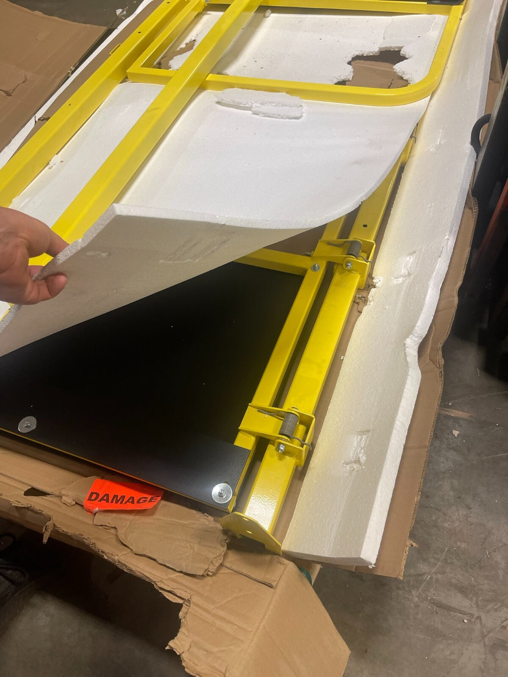 The PS INDUSTRIES Pallet Safety Gate is a durable and high-quality barrier designed to secure warehouse loading and unloading areas. Measuring 80 inches in height and 78 inches in width, this gate features a 42-inch opening for easy access. The bright yellow color adds visibility and safety to the workspace. Manufactured by PS Industries, this gate meets industrial standards and is a reliable solution for keeping your warehouse secure.