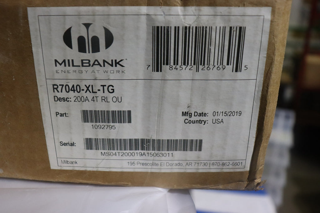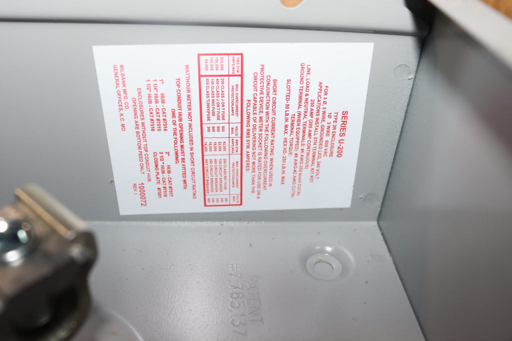 The U7040-XL-TG Milbank 200A 1PH OH/UG 4T Meter Socket is a gray metal meter socket designed for a branch circuit application. With a maximum amperage of 200A and voltage rating of 600V, this vertical, rectangular-shaped socket features an analog/mechanical control style and two poles. The item dimensions are 4.125 inches in length, 14.563 inches in height, and 11 inches in width, making it suitable for various electrical equipment and supplies in a business or industrial setting. The Milbank brand ensures quality and reliability in this crucial electrical component.