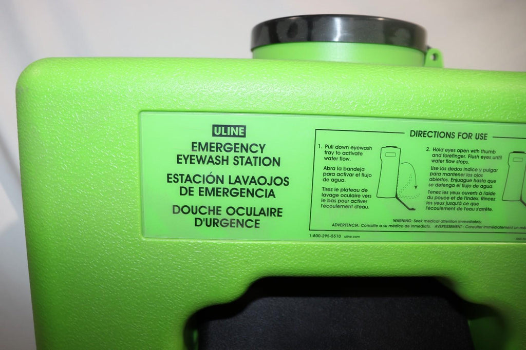 The Uline Eyewash Station Slim Flow H-9832 is a slim-line eyewash station designed for easy installation and maintenance in various industrial and business settings. Made in the United States by Uline, this unit provides a convenient and effective solution for eye-washing emergencies. With its compact design and reliable brand reputation, this eyewash station is a valuable addition to any facility safety equipment collection.